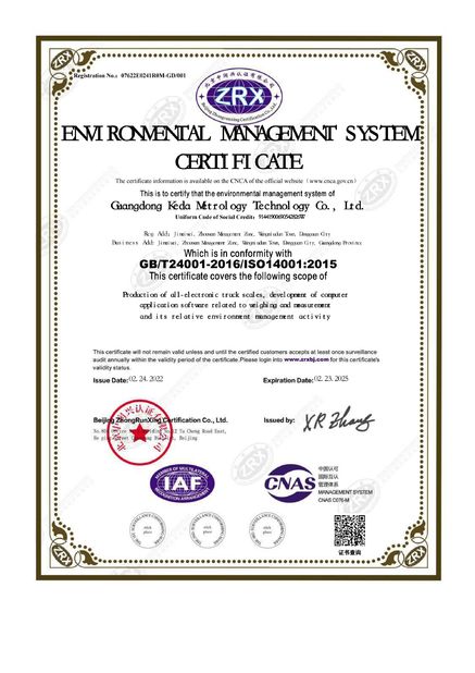 | মান: | GB/T24001-2016/ISO14001:2015 |