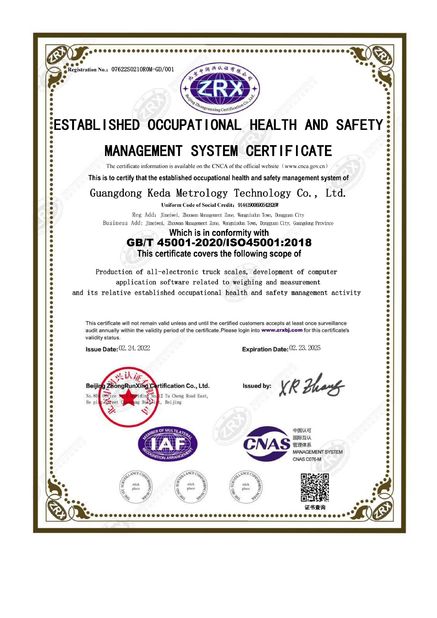| মান: | GB/T 45001-2020/ISO45001:2018 |